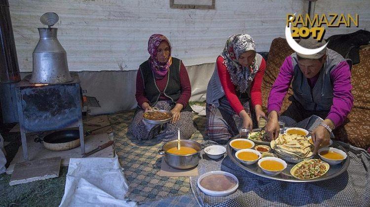 Yoğunluğun ve iş yükünün ramazan ayında da değişmediği yayla yaşamında en keyifli an ise soba başında yapılan iftarlar.